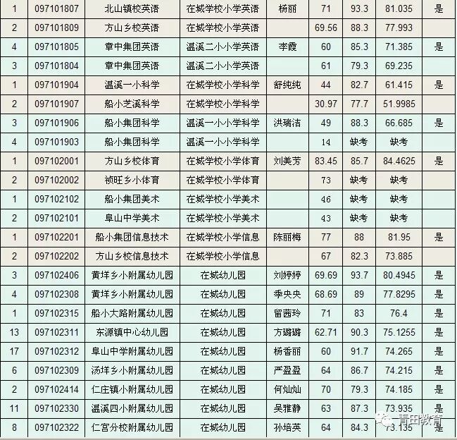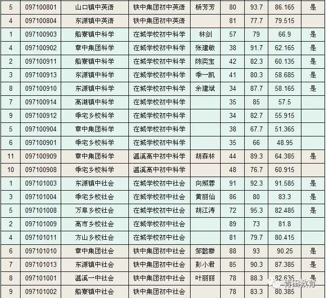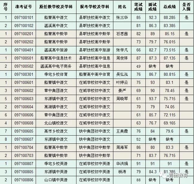 根据《青田县教育局关于公开选调部分教师到县职技校等学校任教的通知》(青教人〔2019〕138号)精神,经过统一组织笔试、面试,本次选调拟到县职技校等学校任教人员名单已经确定,现予公示。