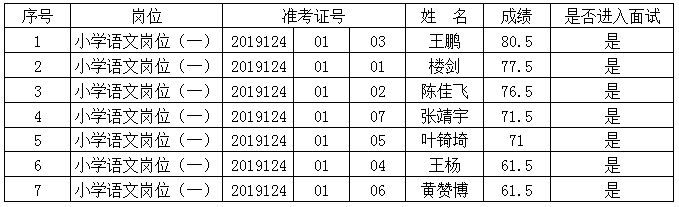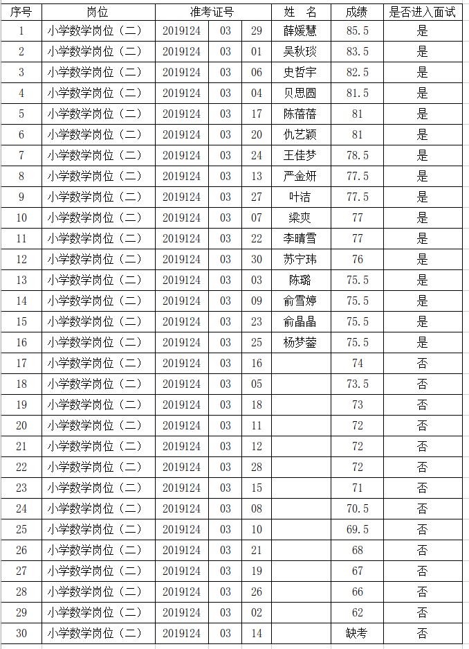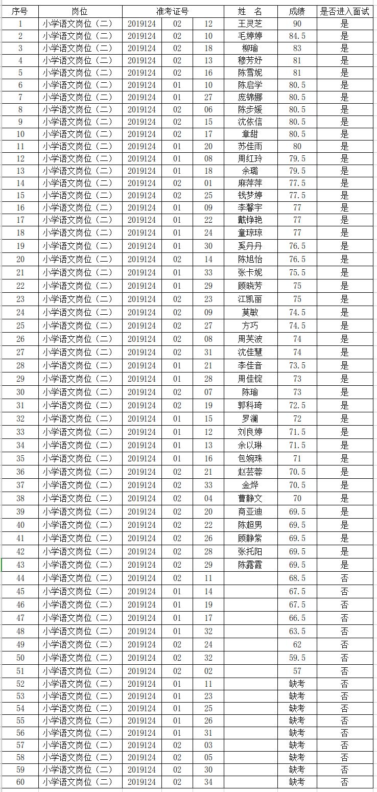 附件:2019年镇海区公开招聘中小学教师笔试成绩及面试入围人员名单