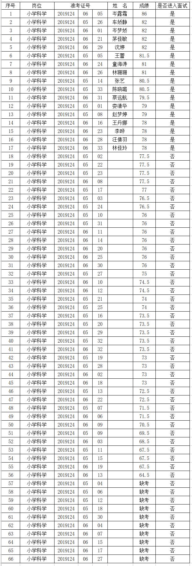 现将镇海区2019年公开招聘中小学教师笔试成绩及面试入围人员名单予以公布(详见附件,其中有姓名的考生为面试入围人员)。